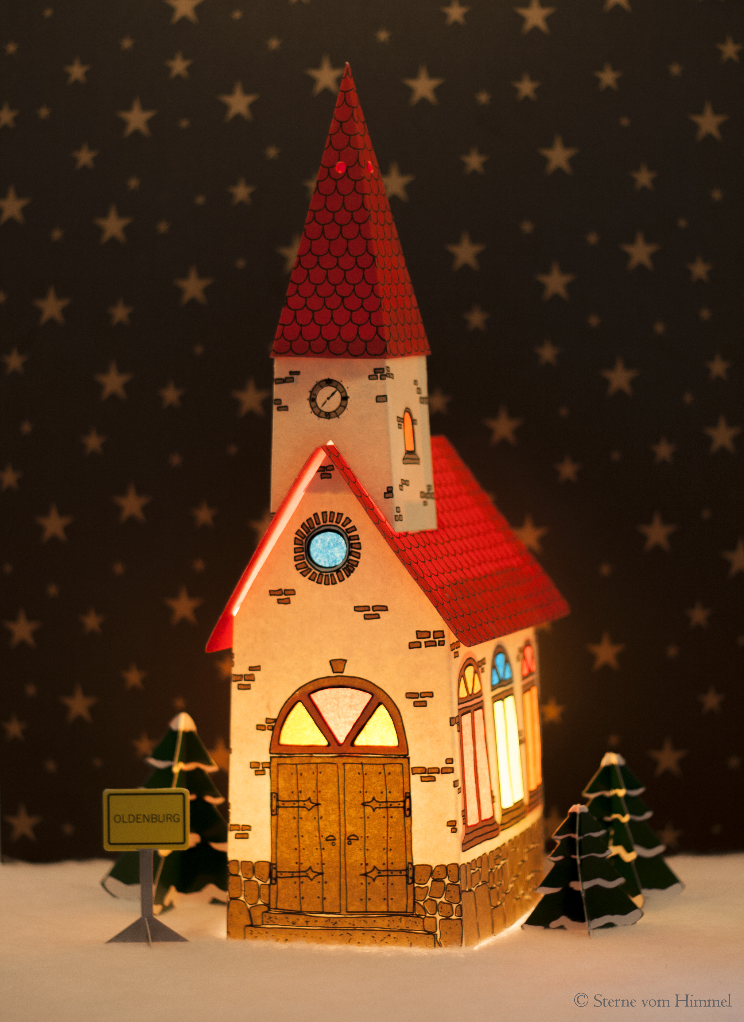 - Fenster mit farbigem Pergamentpapier hinterklebt